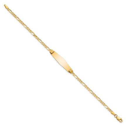 14k Polished Solid Chain/Solid Plate Flat Anchor Link Soft Diamond Shape 19.5×5.2mm Plate Baby/Child ID Bracelet