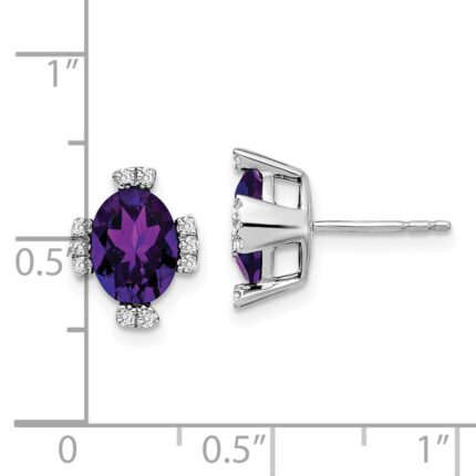 14k White Gold Oval Amethyst and Diamond Earrings
