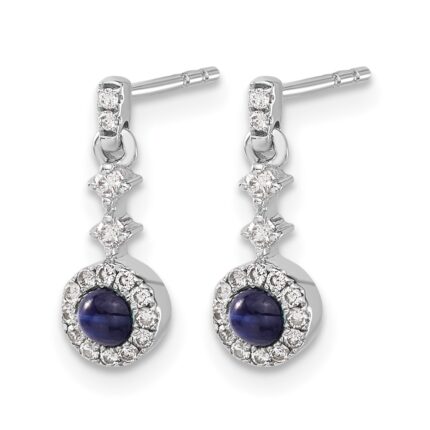 14k White Gold 1/6 carat Lab Grown Diamond VS/SI+ G+ and Cabochon Created Sapphire Complete Dangle Post Earrings