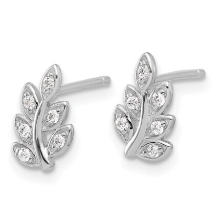Sterling Silver Rhodium-plated CZ Leaf Post Earrings