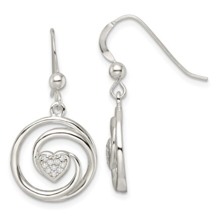 Sterling Silver CZ Heart in Circle Pendant and Earrings Set