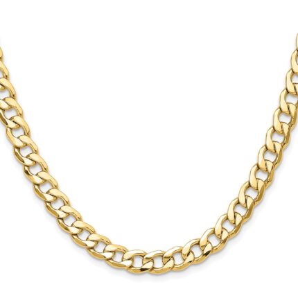 14K 7mm Semi-Solid Curb with Lobster Clasp Chain