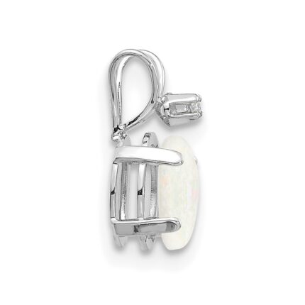 14K White Gold Diamond and 6×4 Oval October/Opal Birthstone Pendant