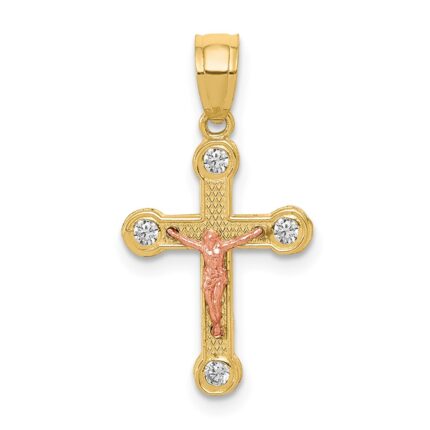 10k Two-tone Yellow and Rose Gold CZ Crucifix Pendant