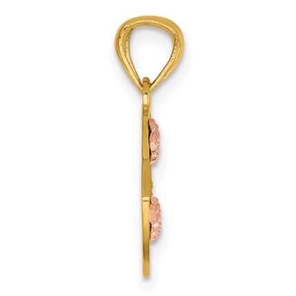 14k Two-tone with Flowers MOM – DAUGHTER 2-Piece Break-apart Hearts Pendant