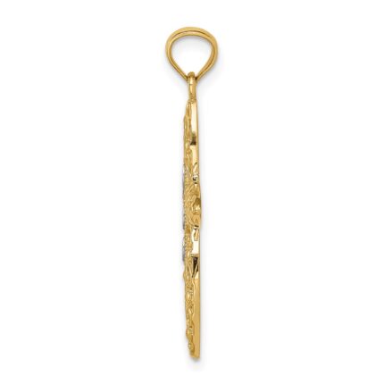 14K with Rhodium Beaded Filigree Cross Charm