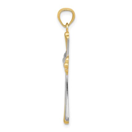 14K Diamond-Cut Rhodium Budded Cross Pendant