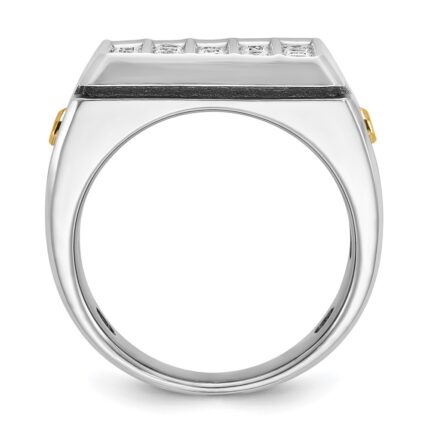 IBGoodman 14k Two-tone with Black Rhodium Men’s Polished Satin and Grooved 5-Stone 1 Carat AA Quality Diamond Ring