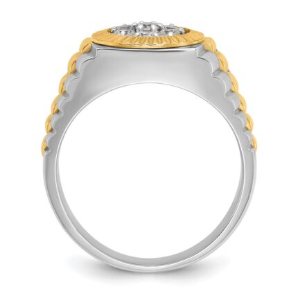 IBGoodman 14k Two-tone Men’s Polished Satin and Ribbed Round 1/2 Carat AA Quality Diamond Cluster Ring