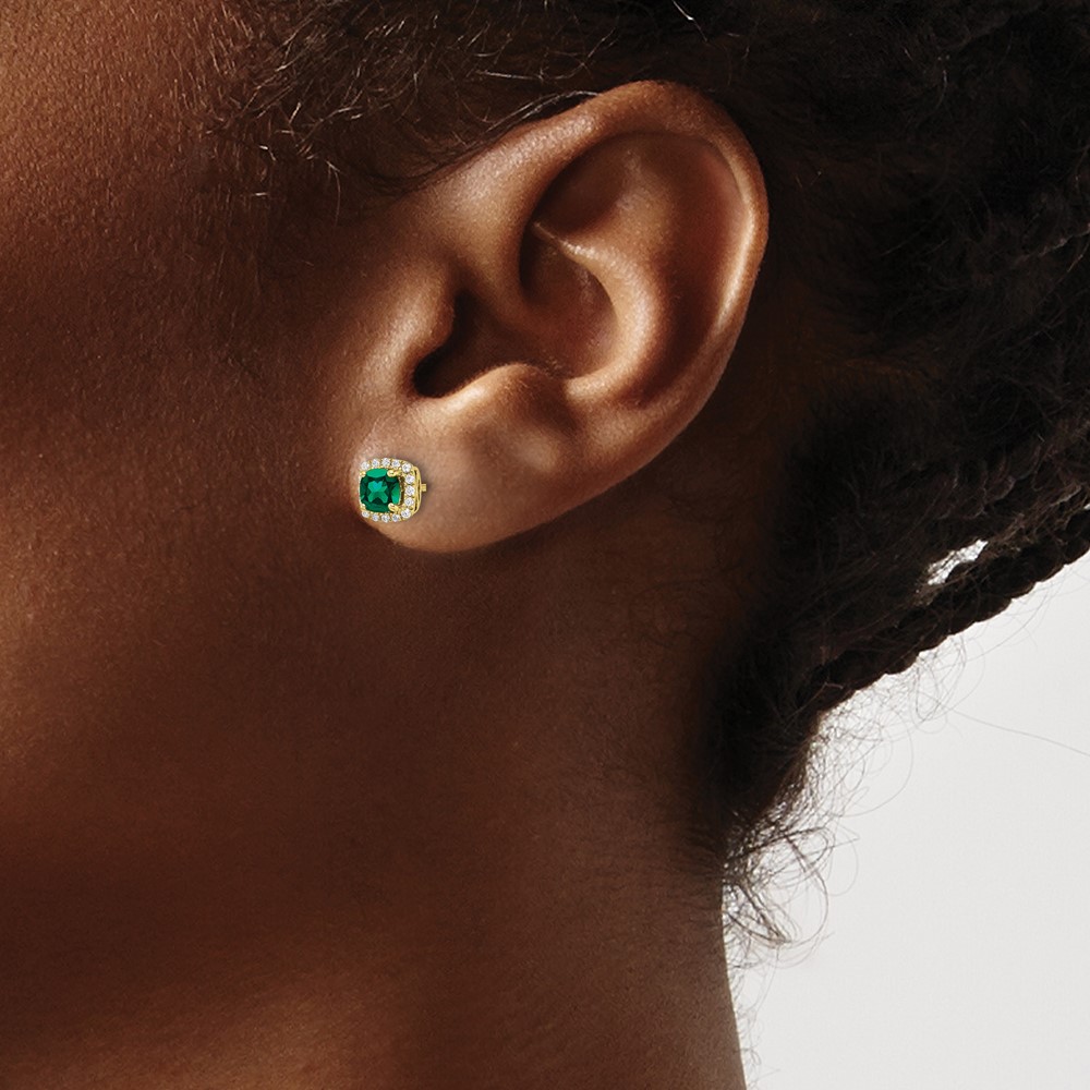 10k 1/10 carat Lab Grown Diamond VS/SI+ G+ and Created Emerald Complete Square Halo Post Earrings