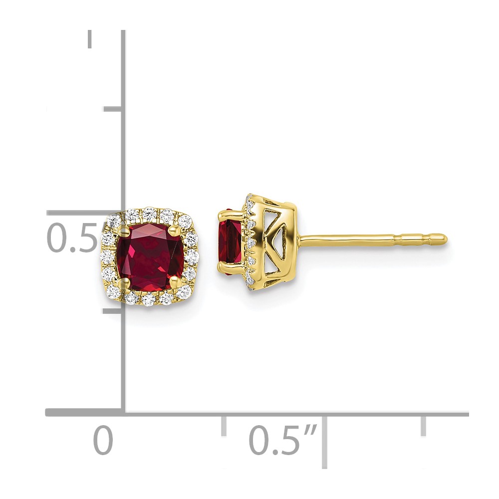 10k 1/10 carat Lab Grown Diamond VS/SI+ G+ and Created Ruby Complete Square Halo Post Earrings