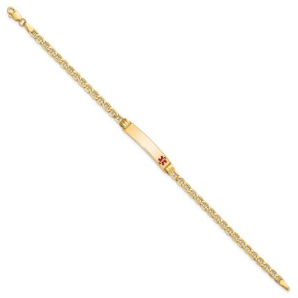 10k Medical Soft Diamond Shape Red Enamel Anchor Link ID Bracelet