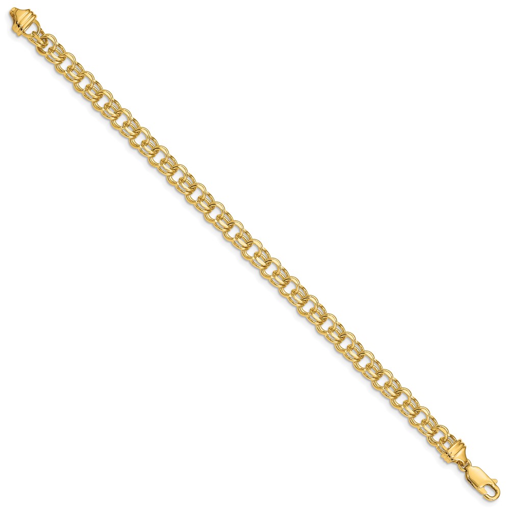10k 7in 6.5mm Solid Double Link Charm Bracelet