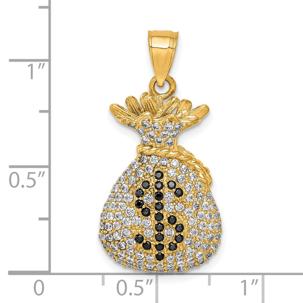 10K Black and Clear CZ Micro Pave Money Bag Pendant