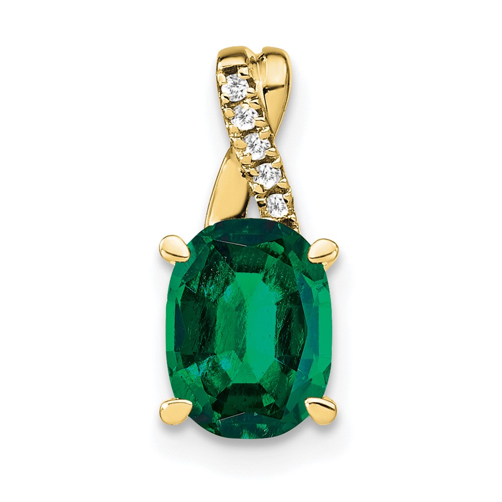 10k Oval Created Emerald and Diamond Pendant