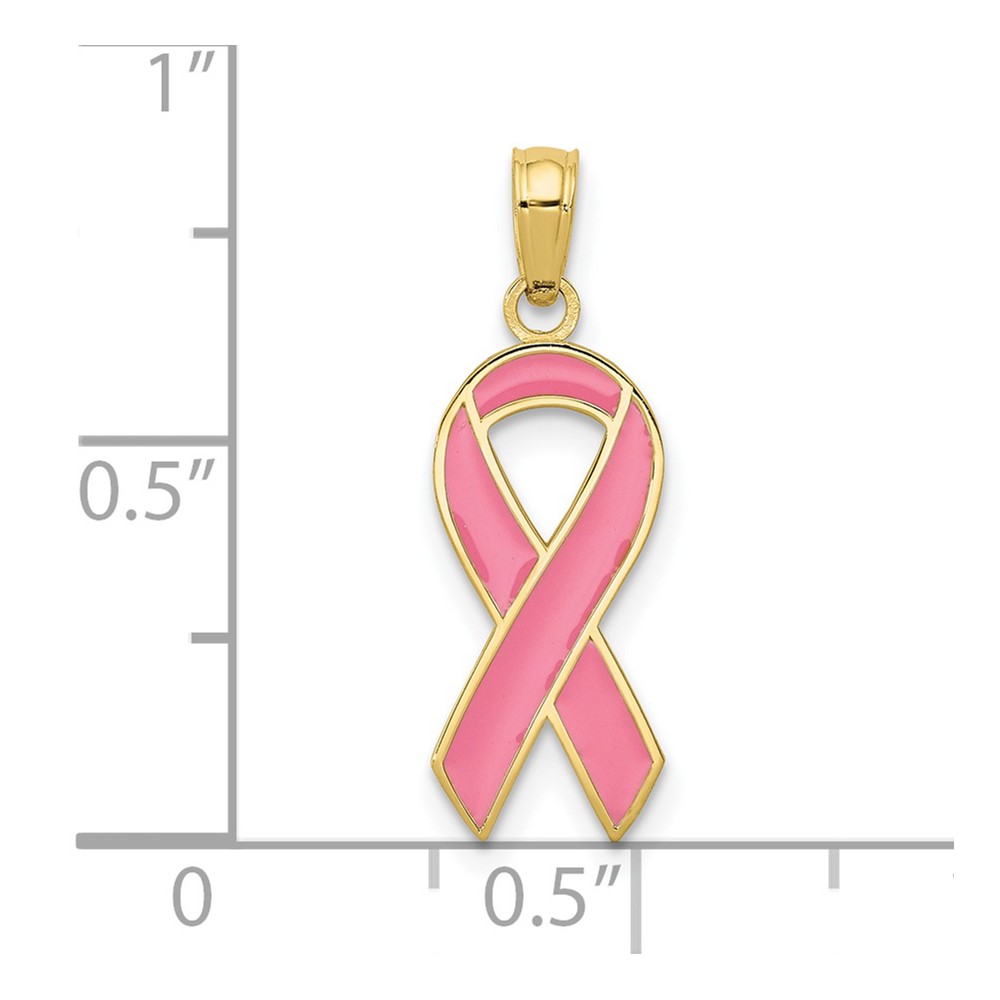 10k Pink Enameled Awareness Ribbon Pendant