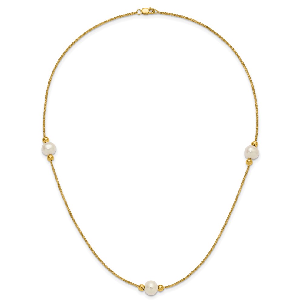 10k Polished 8-9mm Semi-Round White Freshwater Cultured Pearl 3-Station 18 inch Necklace