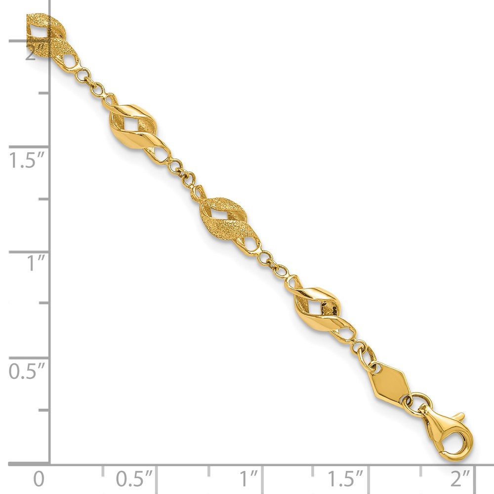 10k Polished and Lasered Spiral Link 7.25in Bracelet