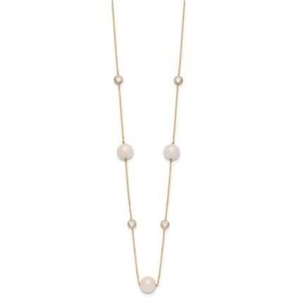10K Polished CZ and 7-8mm FWC Pearl 7 Station Necklace