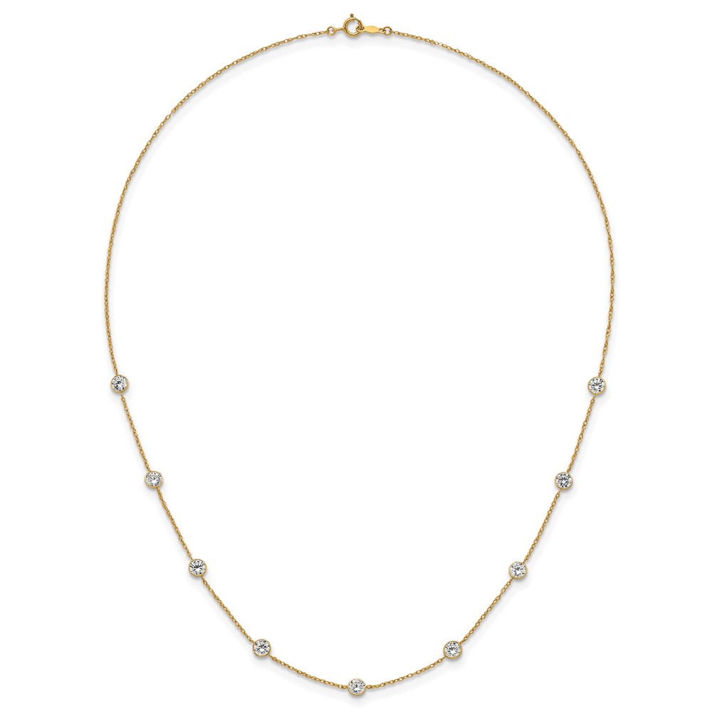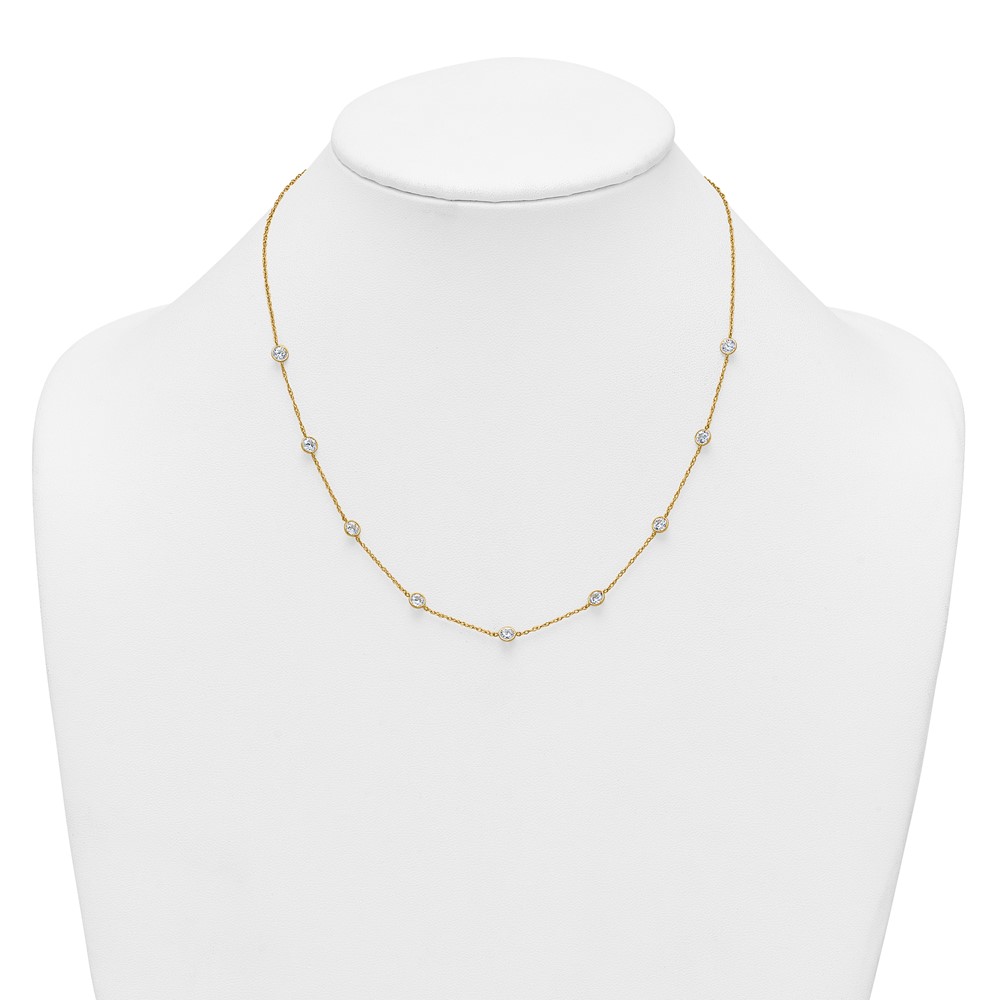 10k Polished Bezel-set Round CZ 9-Station 17.Necklace