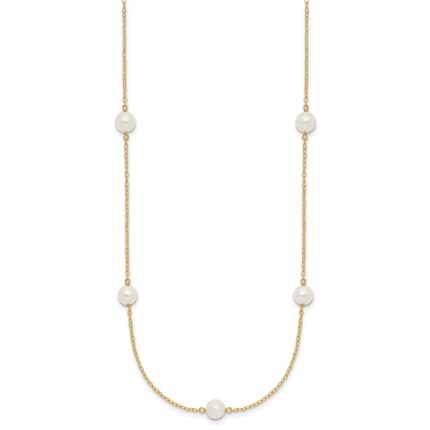 10k White Gold 4-5mm White Near Round Freshwater Cultured Pearl 8-station Necklace