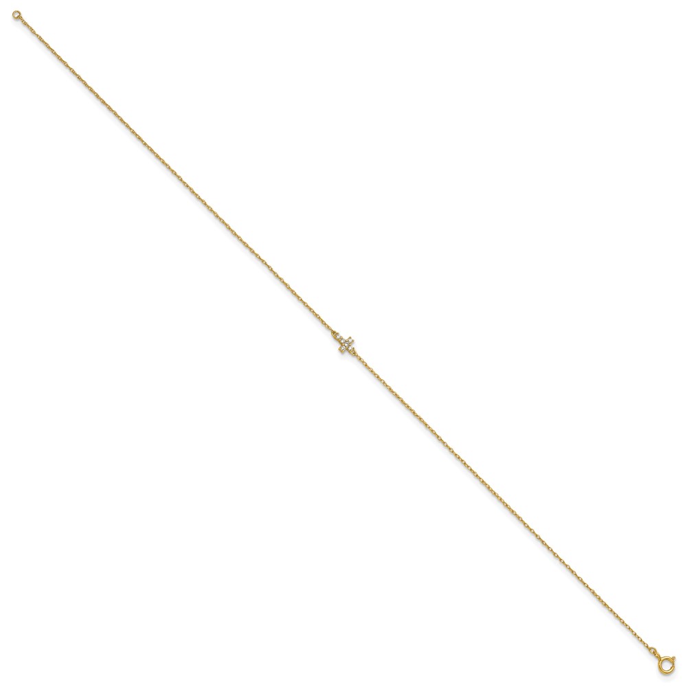 10k Polished Cross Dangle and Beads Plus Extender – Total Anklet