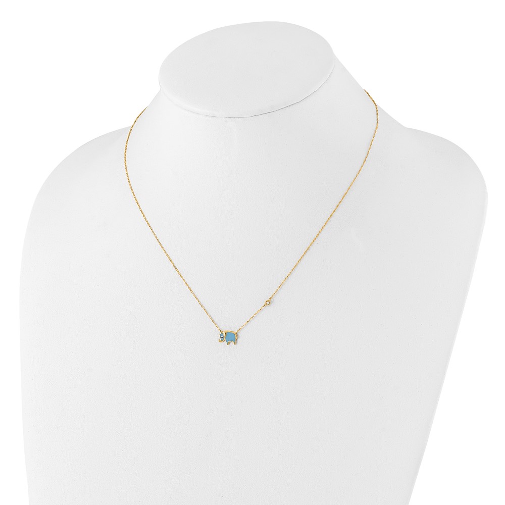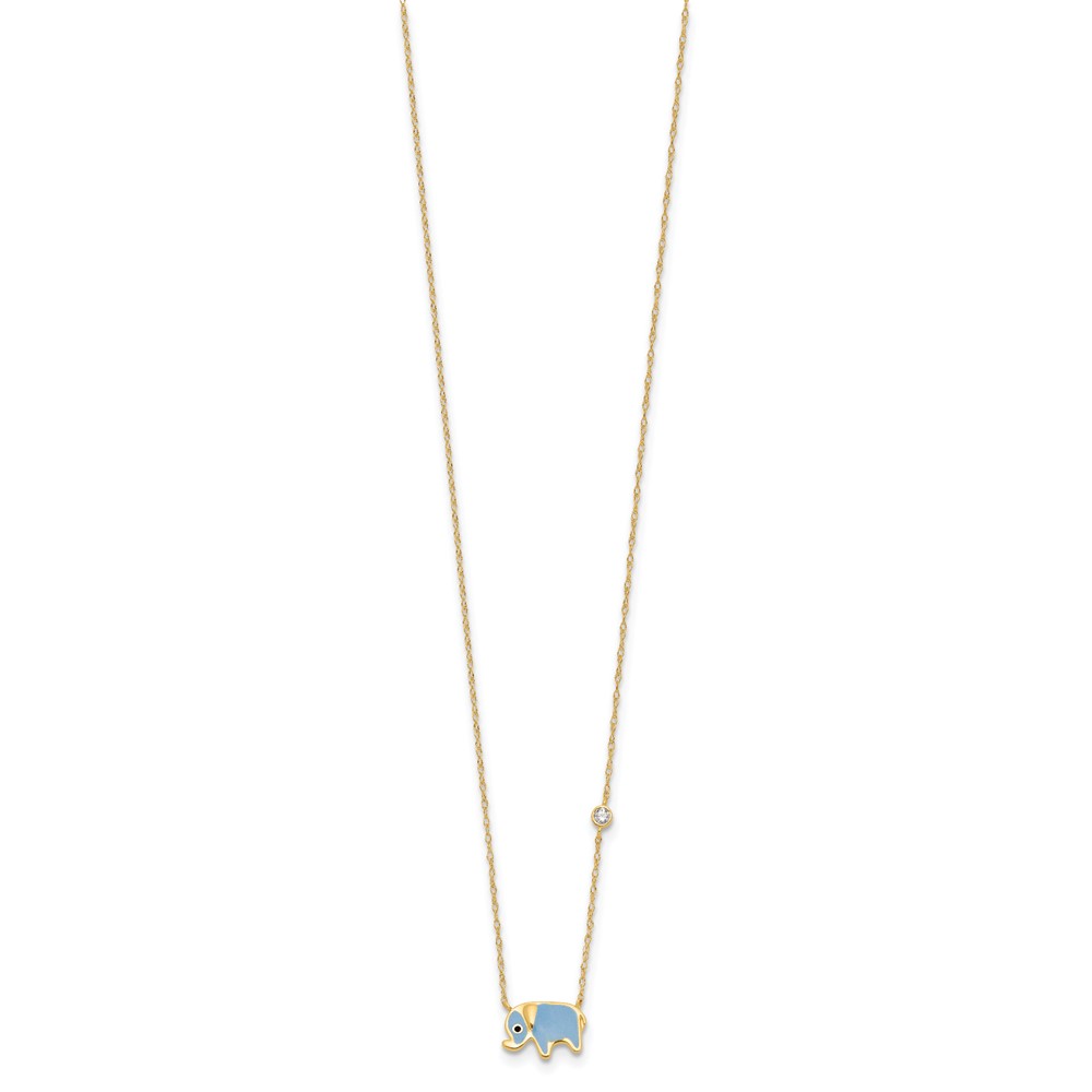 10K Polished CZ Enameled Elephant Necklace