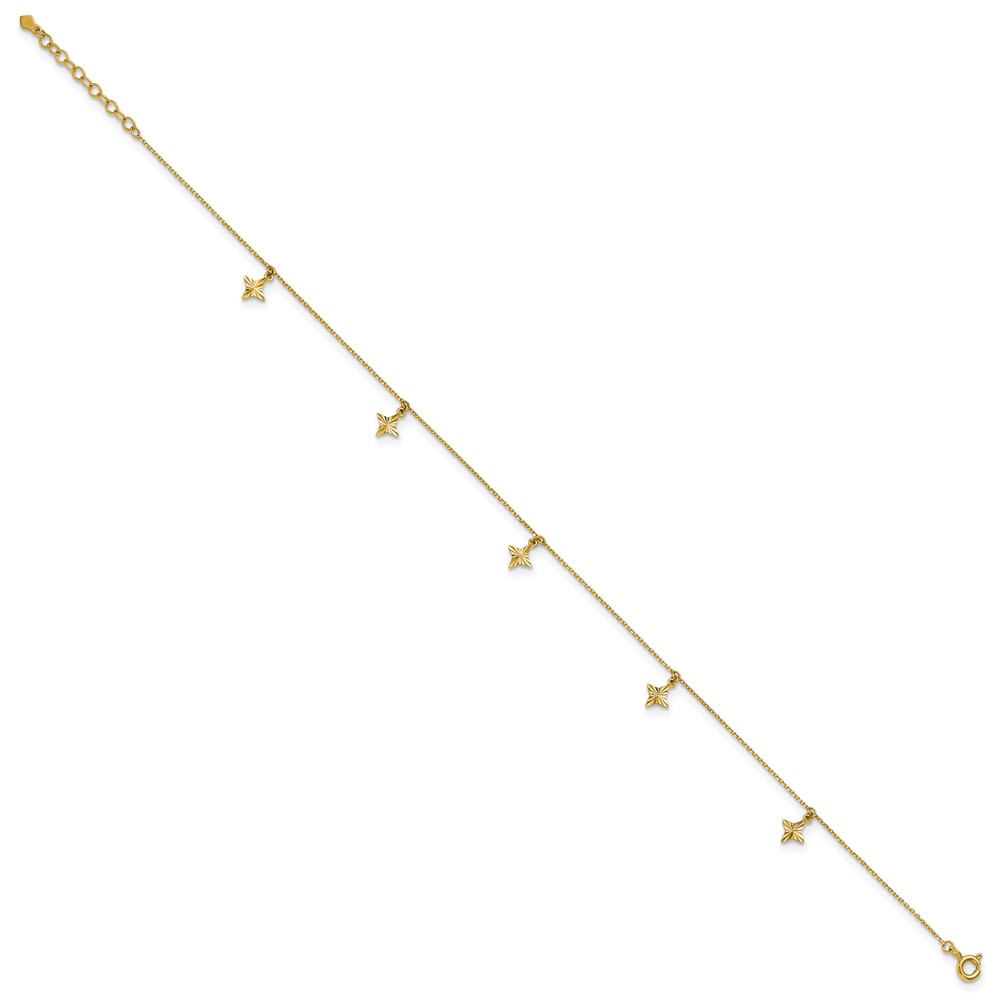 10k Polished Diamond-cut Star Dangles 5-Station Plus Extender – Total Anklet