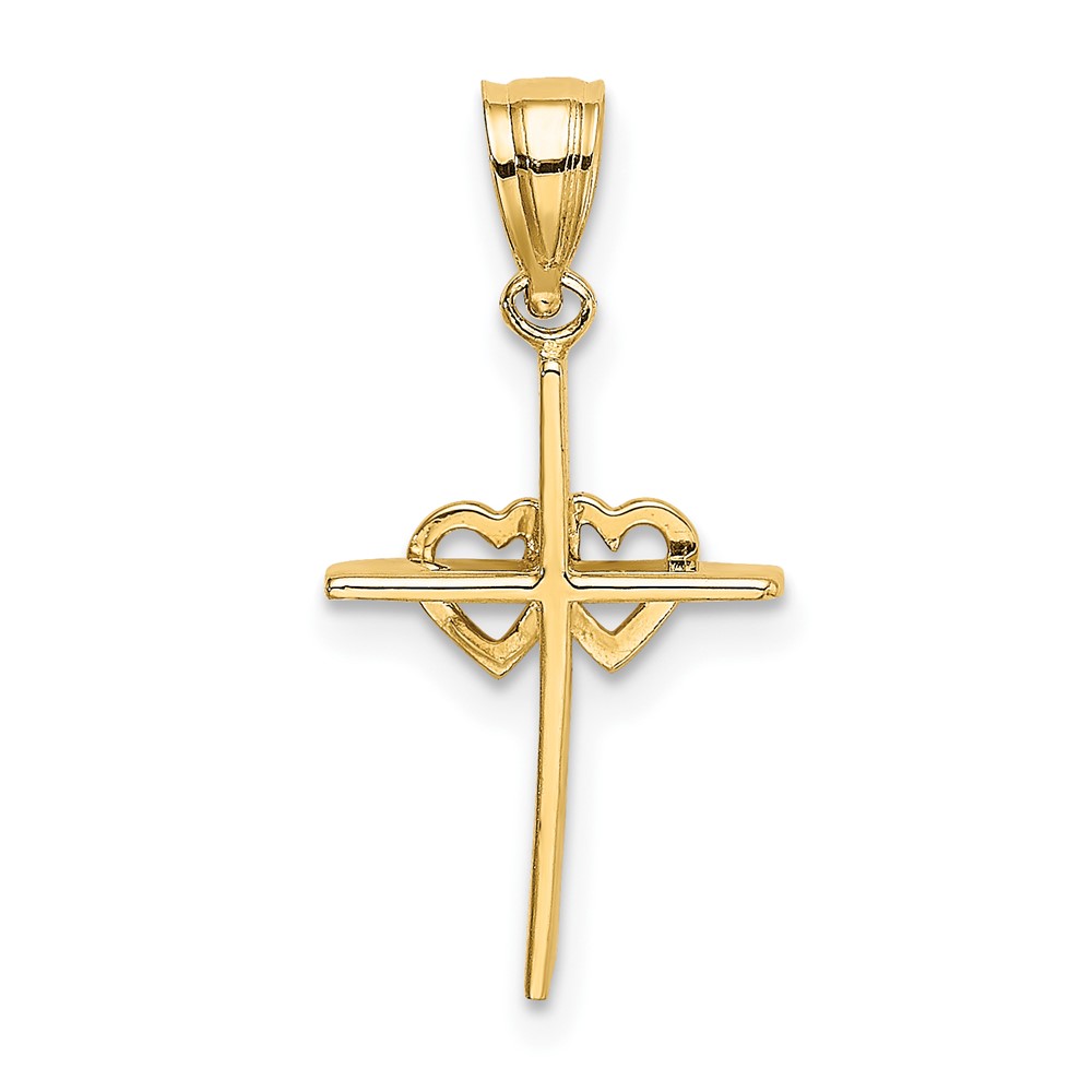 10K Polished Double Hearts On Stick Cross Charm