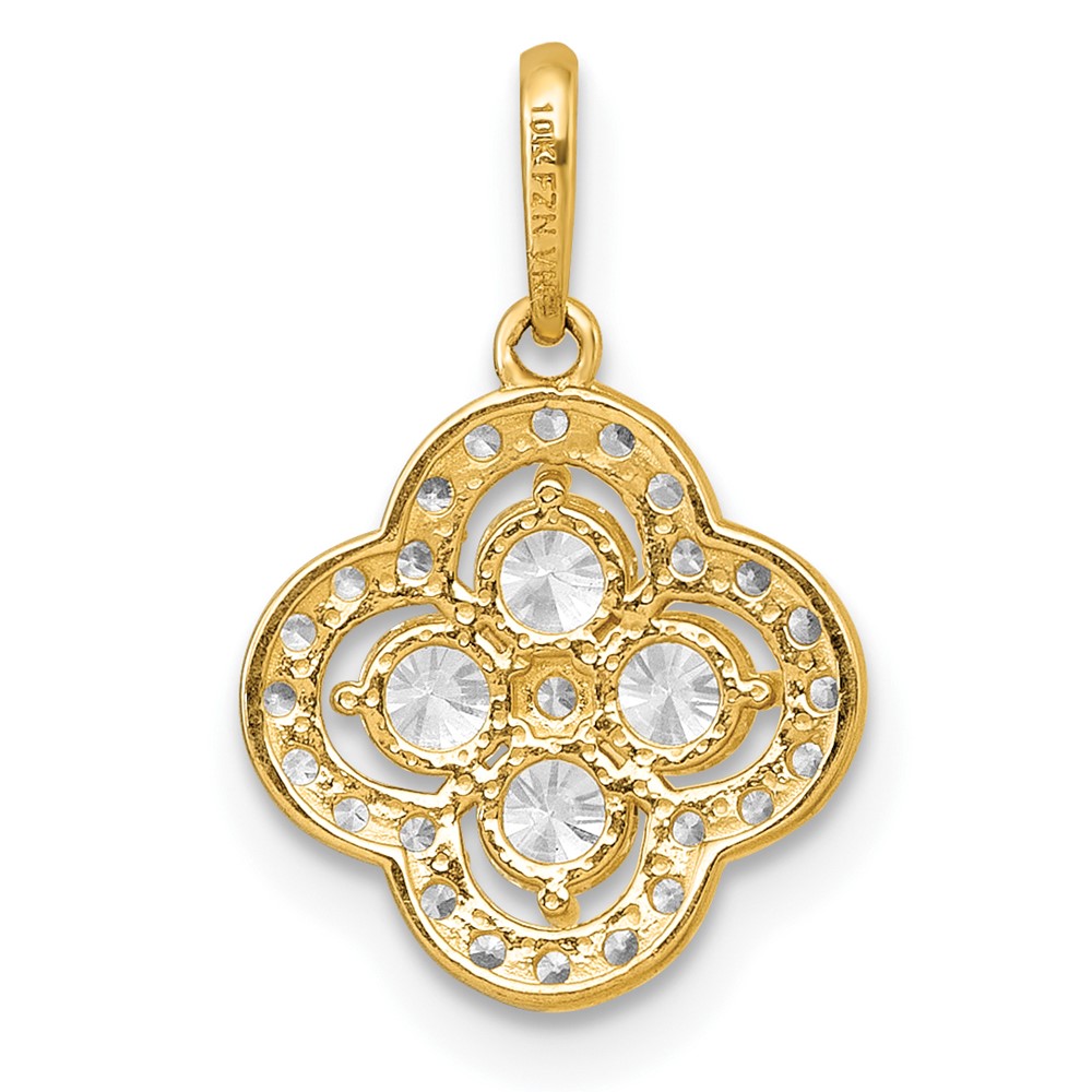 10k Polished Fancy CZ Flower Pendant