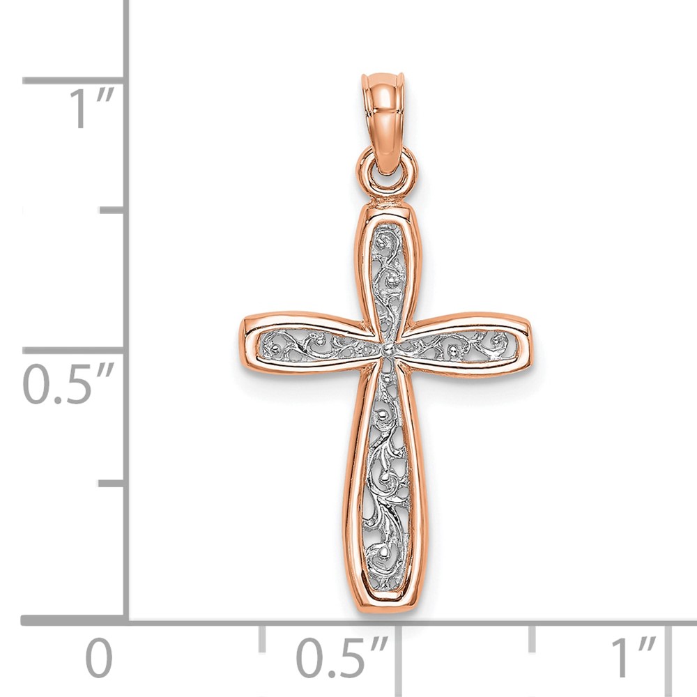 10K Rose w/ White Rhodium Filigree Center Border Cross