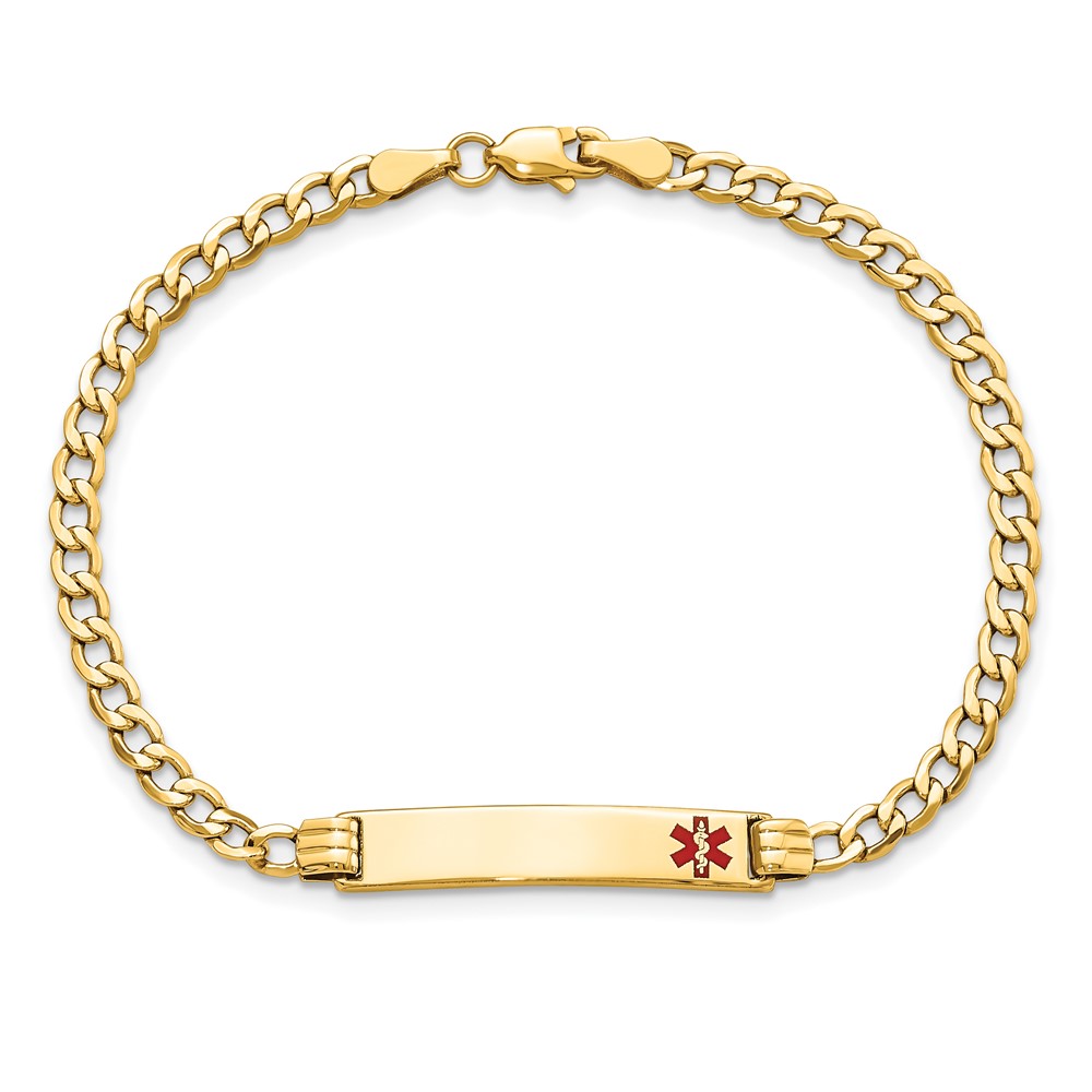 10k Medical Soft Diamond Shape Red Enamel Curb Link ID Bracelet