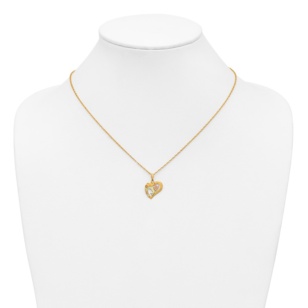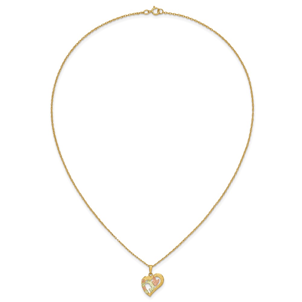 10k Tri-Color Black Hills Gold Hummingbird in Heart Necklace