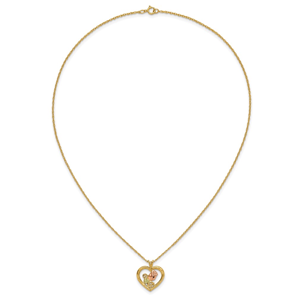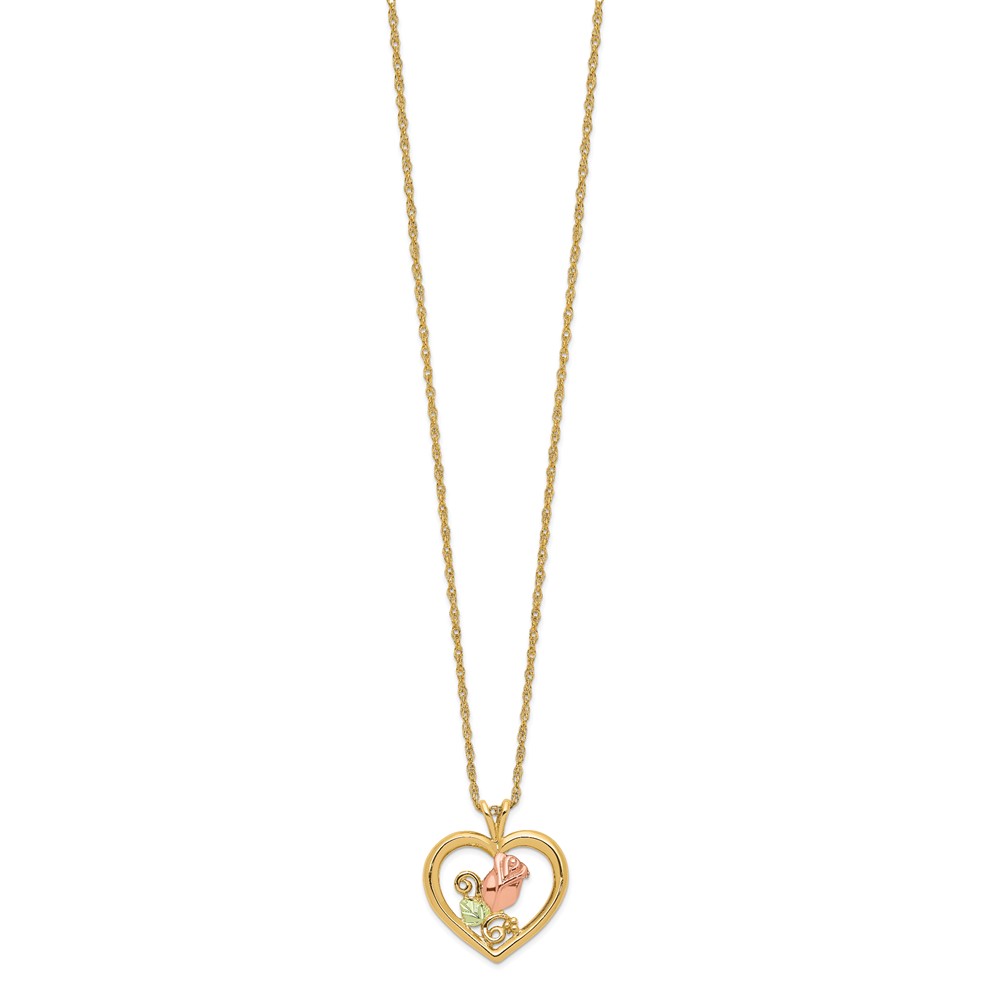 10k Tri-Color Black Hills Gold Rose in Heart Necklace