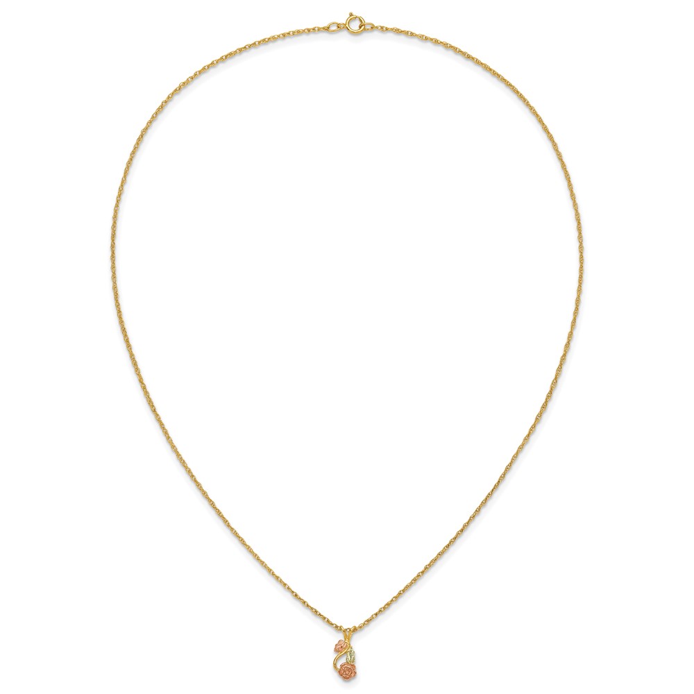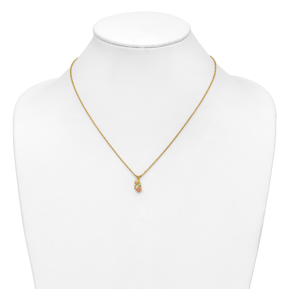 10k Tri-color Black Hills Gold Diamond Rose Necklace