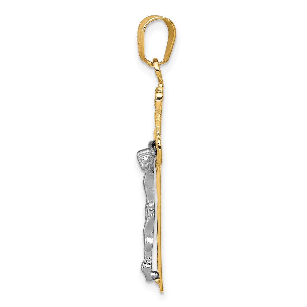 10K Two-tone D/C Medium Block Lattice Cross w/Crucifix Pendant
