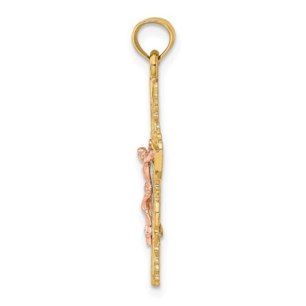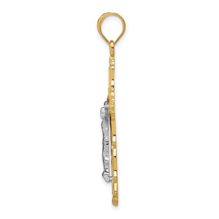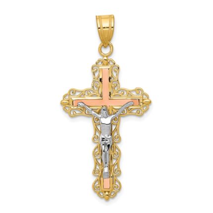 10K Two-tone Textured w/ Lace Trim Crucifix Charm