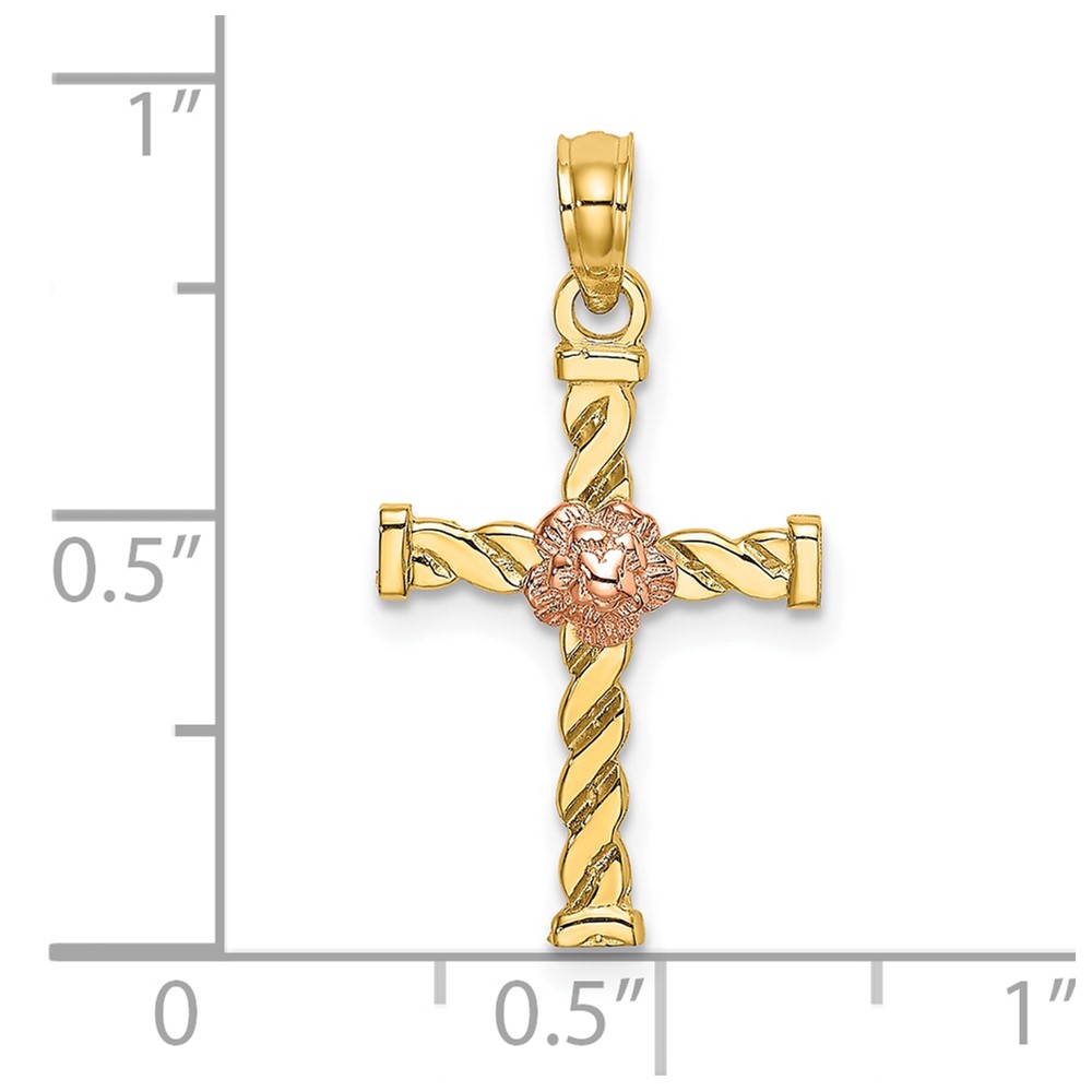 10K Two-Tone Twisted Cross w/ Flower Charm