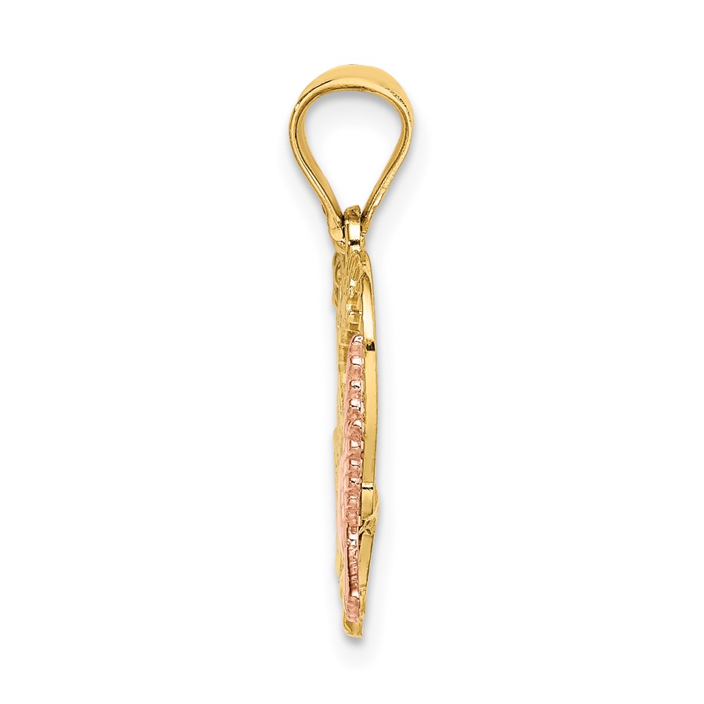 10k Two-tone w/White Rhodium AMOR Heart w/Doves Charm