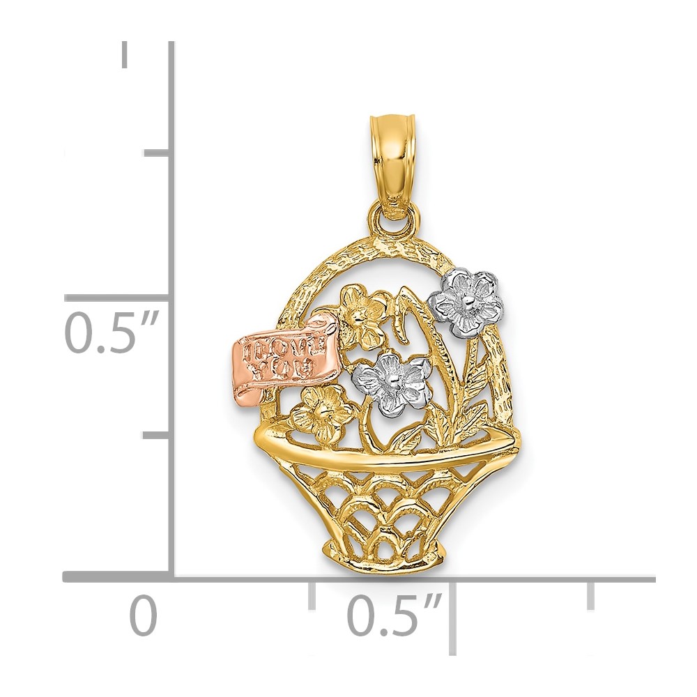 10k Two-Tone w/White Rhodium Flower Basket w/I LOVE YOU Charm