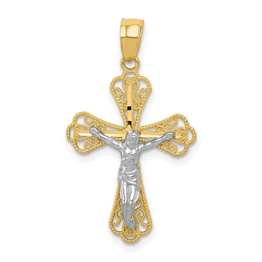 Be the first to review “10K w/ Rhodium Filigree Crucifix Pendant”