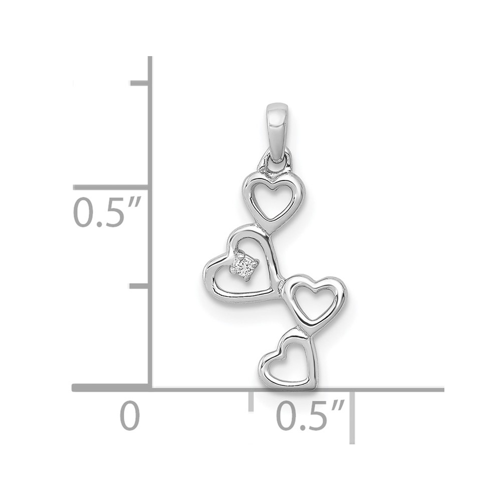 10K White Gold .01ct. Diamond Four Hearts Pendant