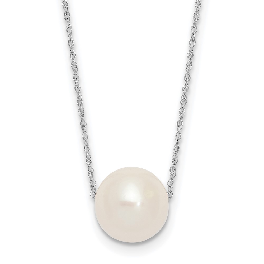 10k White Gold 10-11mm White Round Freshwater Cultured Pearl 17 inch Rope Necklace