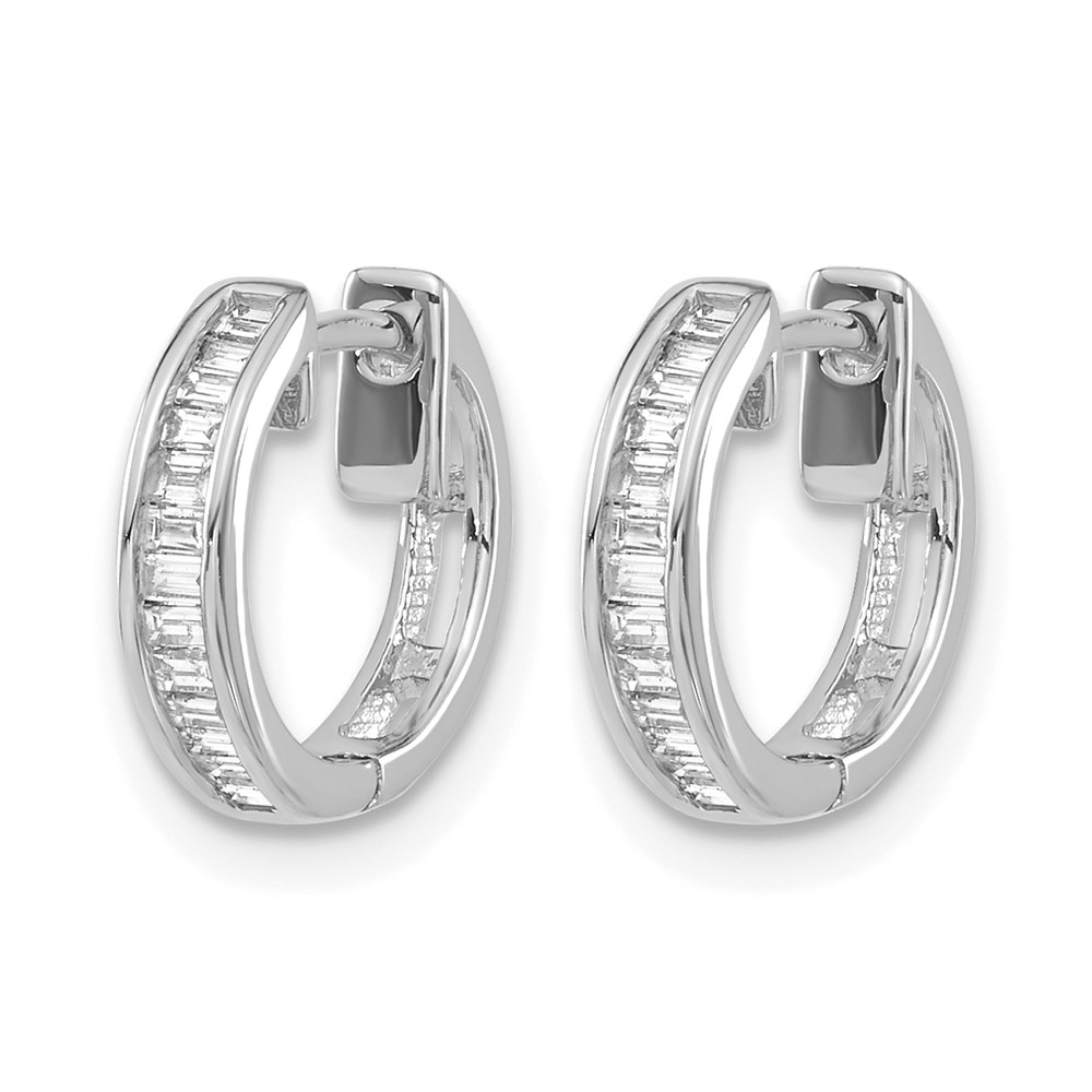 10k White Gold Baguette Diamond Hinged Hoop Earrings