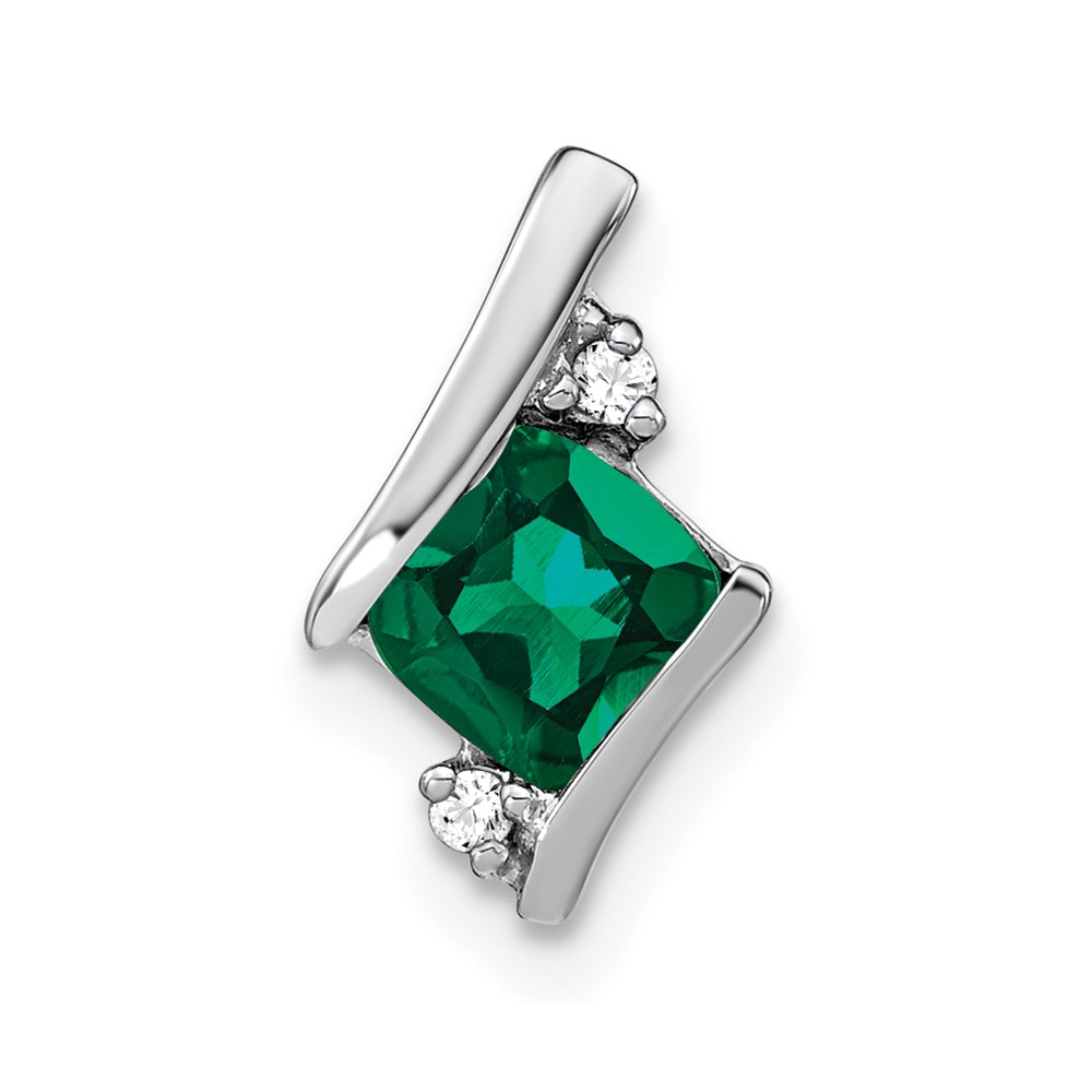 10k White Gold Cushion Cr. Emerald and Diamond Chain Slide