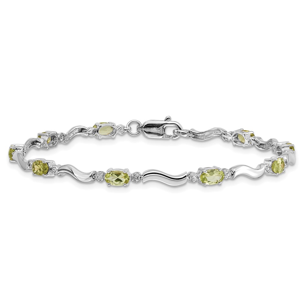 10k White Gold Fancy Diamond and Peridot Bracelet
