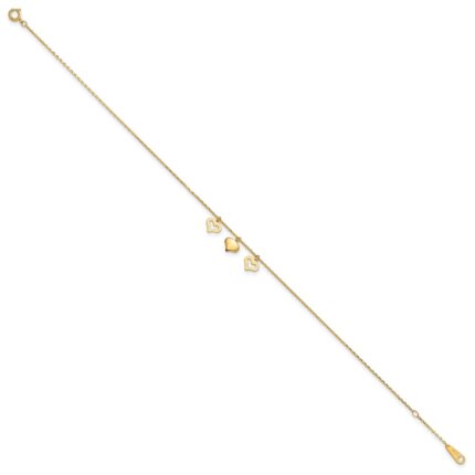 10k Polished Three Heart Dangles Plus Extender – Total Anklet
