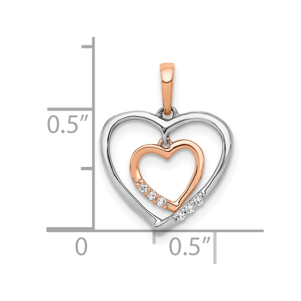 10Kt White w/ Rose Gold Heart Charm Diamond Heart Pendant