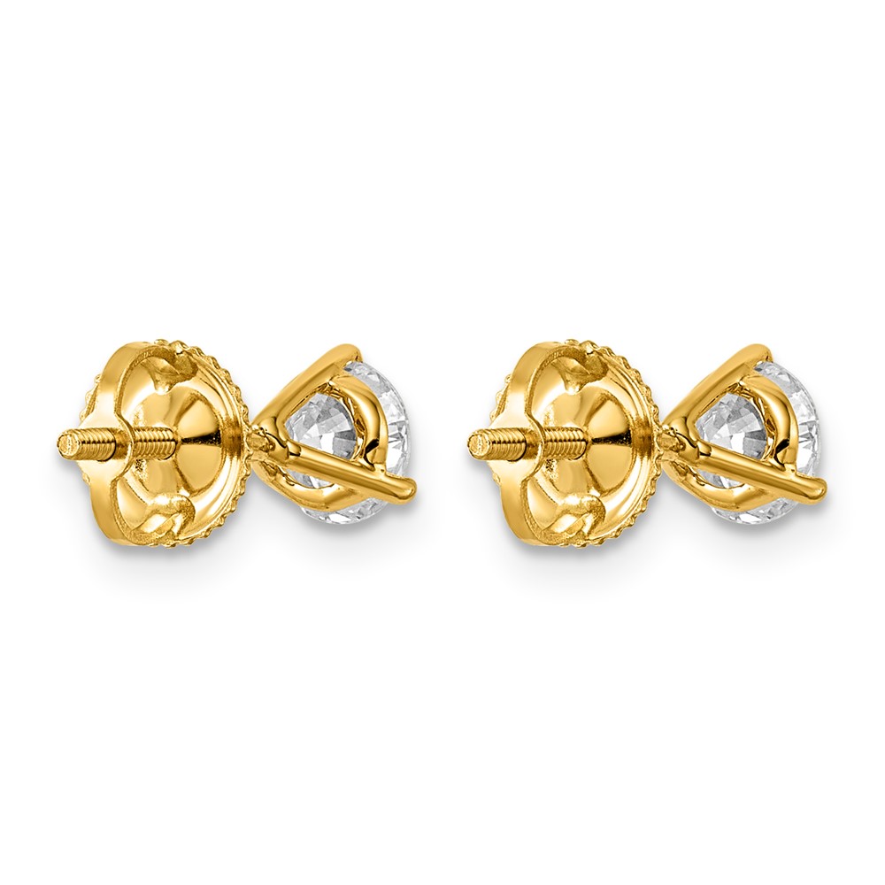 14k 1 carat Lab Grown Diamond VS/SI+ G+ Round Complete Three Prong Screwback Stud Earrings