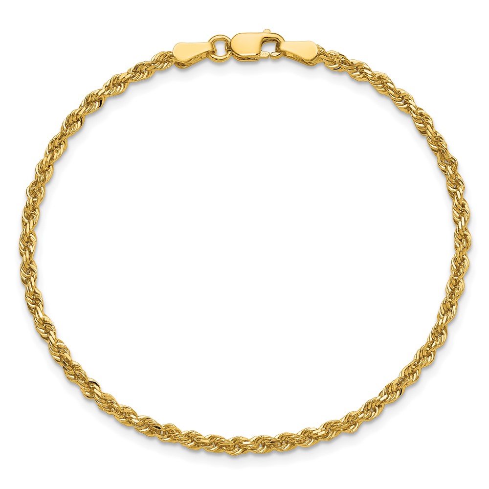 14K 2.25mm Diamond-cut Rope with Lobster Clasp Anklet